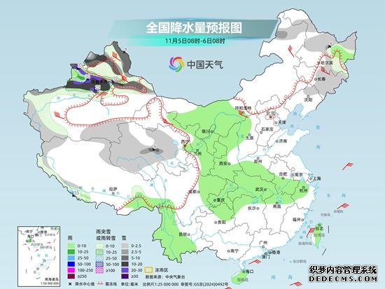 中央气象台预计,今天,新疆西北部和南疆西部、西藏西部和东南部、内蒙古中部和东北部、黑龙江北部的部分地区有小到中雪或雨夹雪,其中新疆沿天山西部、内蒙古中部的部分地区有大到暴雪,局地大暴雪,新增积雪4至6厘米,局地可超过10厘米。甘肃东南部、陕西西南部、四川东北部、重庆北部、江南南部、华南等地的部分地区有小到中雨,其中海南岛东部有大到暴雨,局地大暴雨。